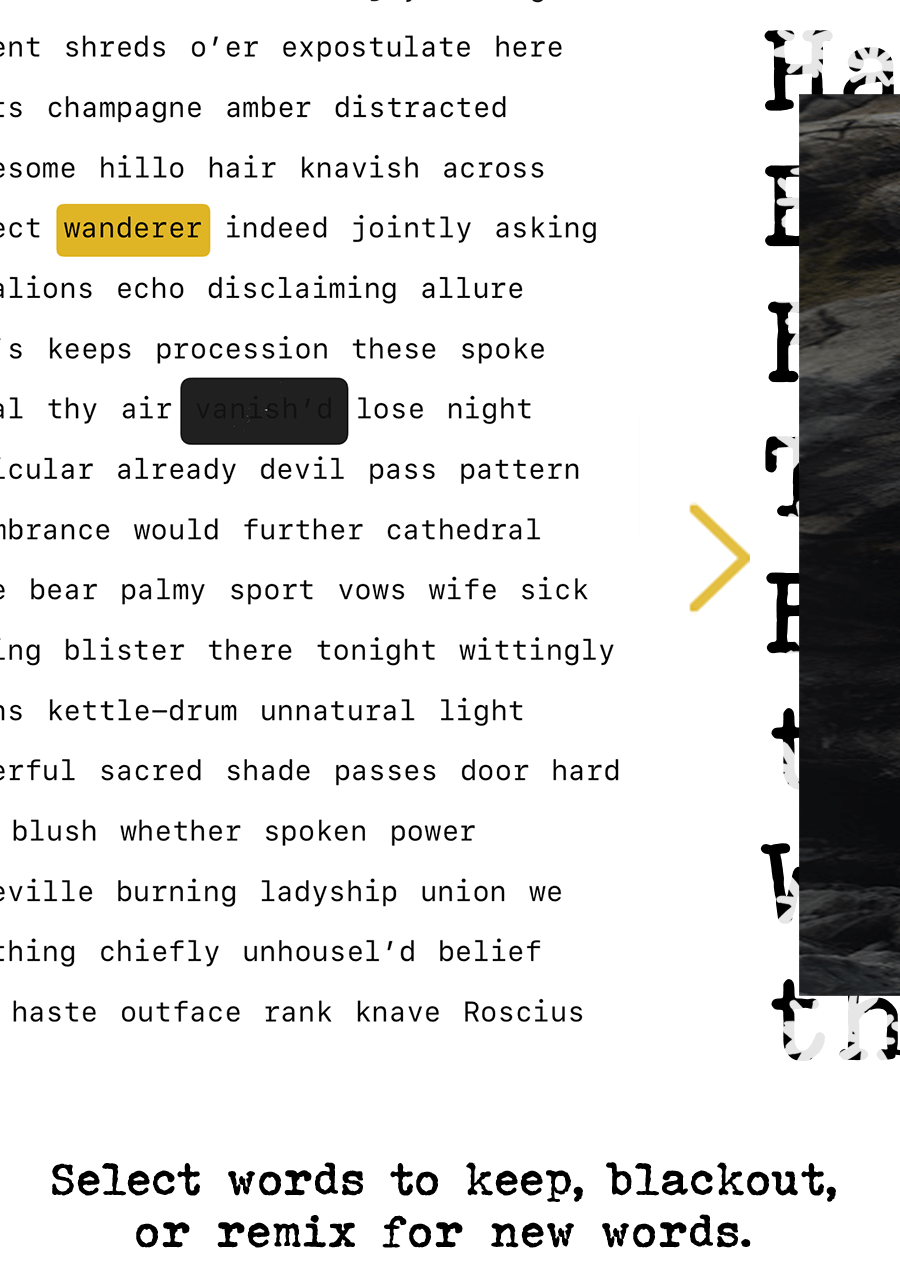 Tap and swipe to keep or blackout words. Remix to replace remaining words.